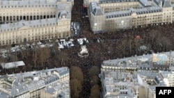 Ранее - в субботу - около 700 тысяч человек вышли на улицы французских городов, чтобы почтить память жертв теракта в редакции сатирического еженедельника Charlie Hebdo в Париже и последующих за этим нападением других трагических событий.
