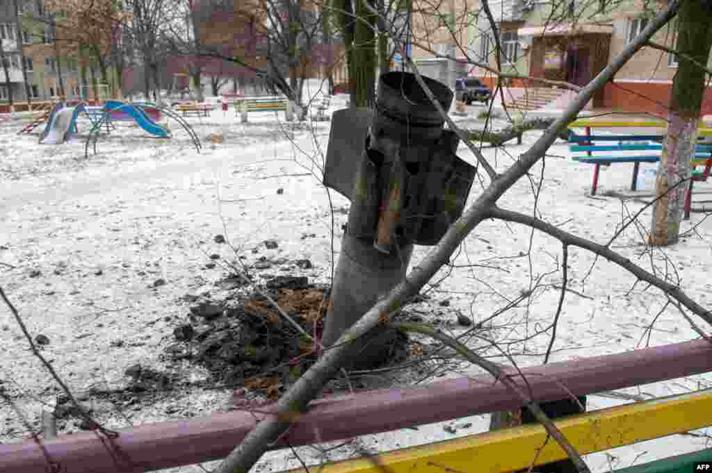 Жители Краматорска рассматривают реактивный снаряд