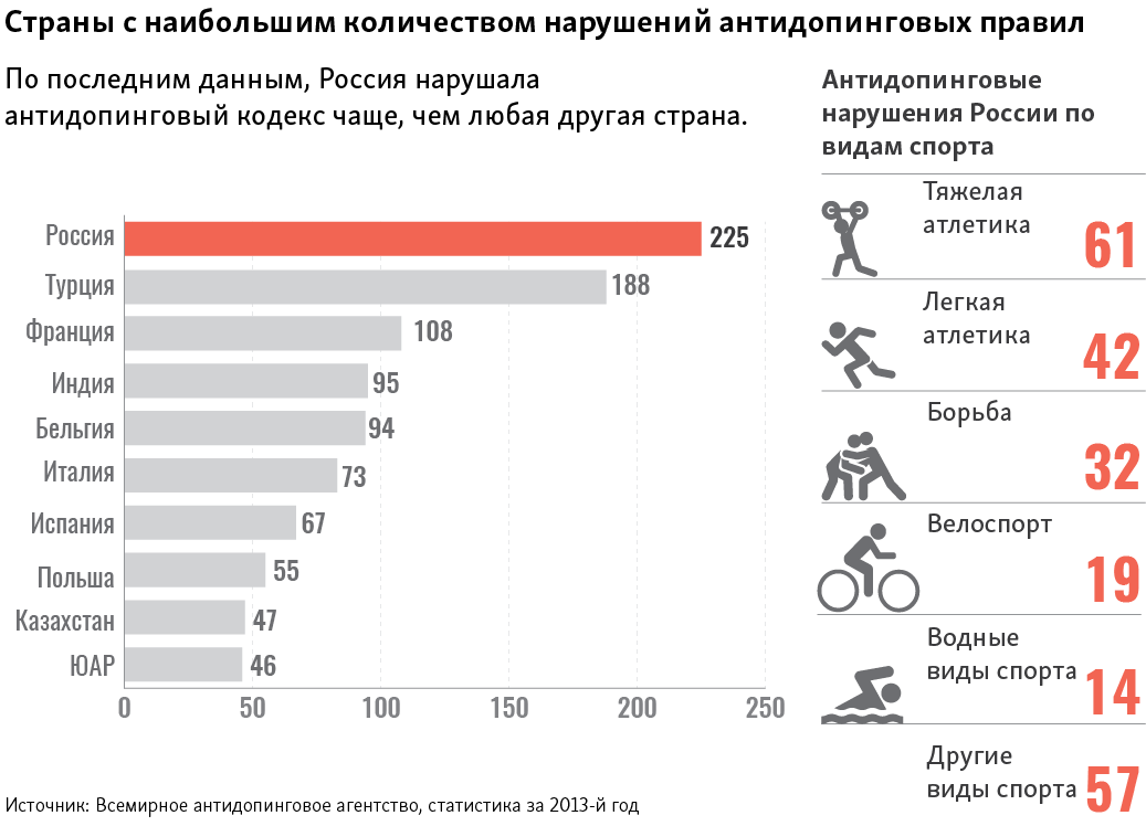 Также "существуют доказательства, что тренеры пытались вмешиваться и мешать проверкам на допинг и допинговым отчетам".