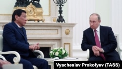 Дутерте неоднократно выражал поддержку российским властям и лично Путину. Во время своей первой встречи с президентом РФ в ноябре прошлого года он назвал Россию "великой страной", а также подверг критике западную, как он выразился, "дедовщину" и "лицемерие". Также он сказал, что союзам с Соединенными Штатами нельзя доверять и пригласил российский флот швартоваться в портах страны "в любое время" – для игры, пополнения запасов или, может быть, "нашей защиты".