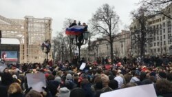 Участники московской акции протеста дошли по Тверской до Манежной площади. "Медиазона" оценивает количество протестующих в 500 человек.