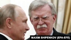 Главной темой встречи Болтона с Путиным была ситуация вокруг договора о ликвидации ракет средней и меньшей давности (ДРСМД), из которого США хотят выйти, а также новая встреча президентов РФ и США.