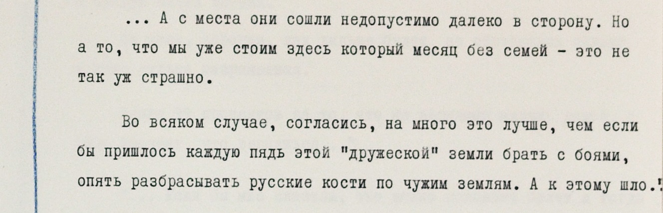 Другой военный констатирует: “Не были они сволочи нашими друзьями и не скоро будут”.
