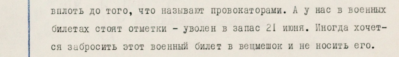 Призывники, не имеющие возможности добровольно покинуть службу, невзлюбили уезжающих из Чехословакии сверхсрочников. В одном из писем их сравнивают с “крысами, бегущими с тонущего корабля”.