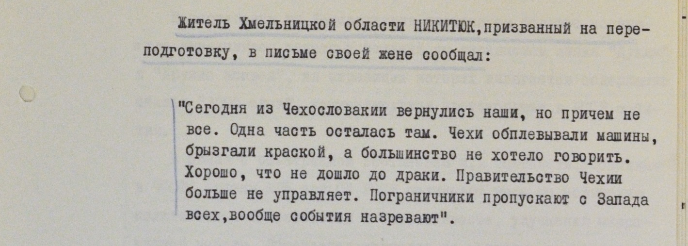 “Зловещей и опасной” называл обстановку в войсках отправленный на переподготовку в июле 1968-го житель Хмельницкого.