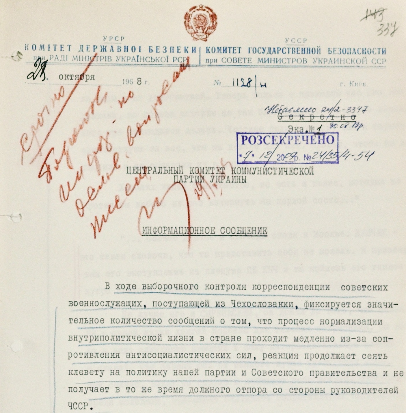 Через какое-то время после вторжения советские военные начали отправлять из Чехословакии письма домой. Перлюстрацией (тайным просмотром личной переписки – НВ) занималась специальная группа сотрудников КГБ, находящаяся во Львове. По итогам “проработки” они готовили для начальства две подборки с наиболее характерными интересующими спецслужбу фрагментами. К сожалению, в сохранившихся документах не указаны имена авторов писем, места их проживания – очевидно, все они из Украины – и точные даты написания и отправки. Предположительно, все письма были отправлены с конца августа по конец октября 1968 года.