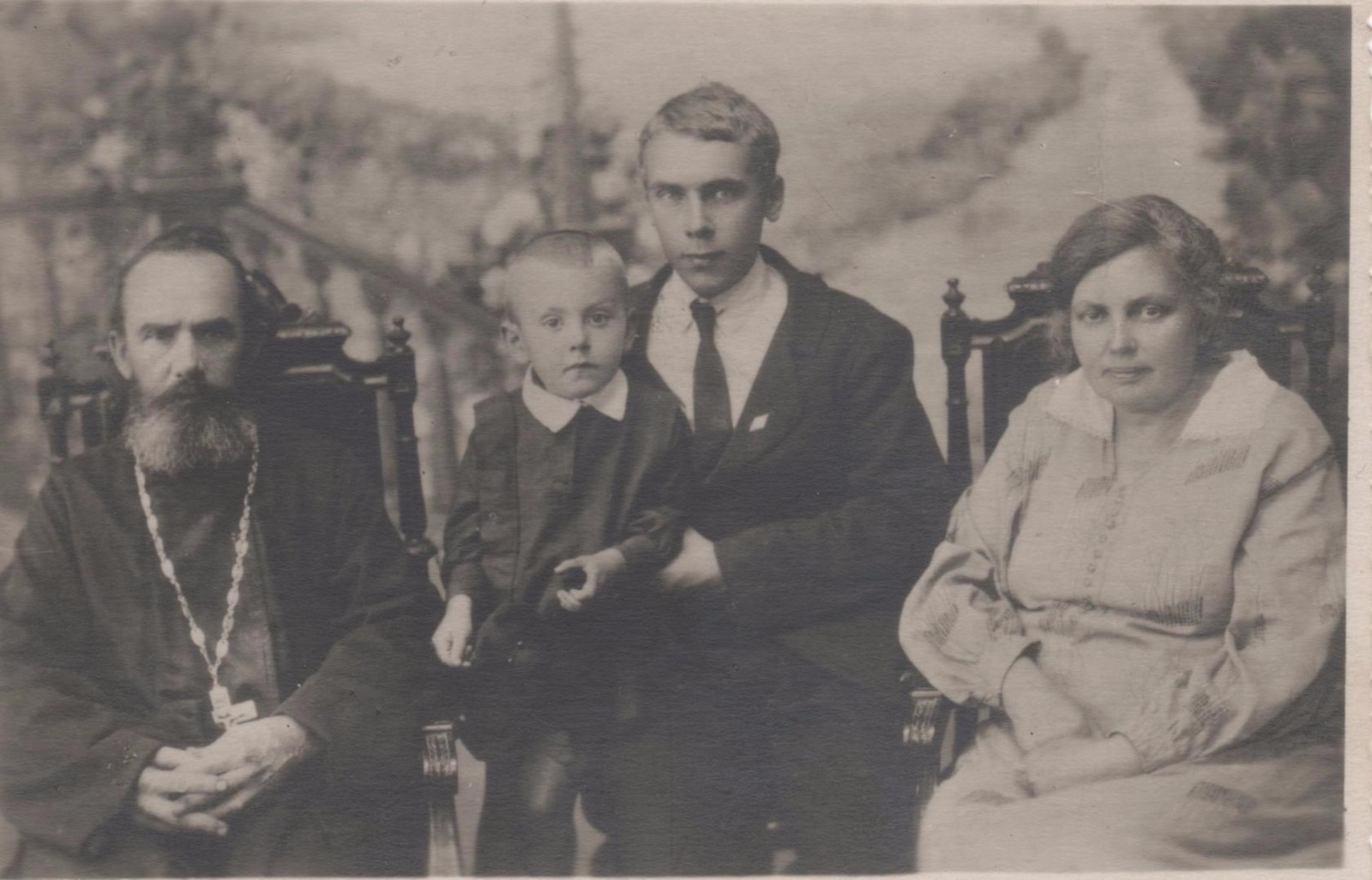 Федор Самсонович (священник слева), в середине – его сын Николай Андриевский и внук Вячеслав, справа – супруга Александра. Фото: личный архив