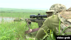 "Дистанция 300 метров. Погрешность на ветер – три метра на секунду, и делаем плавный спуск. – Есть". Ротный сержант 80-й бригады ВСУ Олег Малиновский на одном из полигонов в Донецкой области пристреливает новенькую полуавтоматическую снайперскую винтовку украинского производства ЮАР-10. "Очень легко из нее стрелять в сравнении с СВД [снайперская винтовка Драгунова]. Все-таки современное оружие, просто супер", – говорит Олег Малиновский.