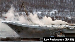 Единственный в России авианесущий крейсер загорелся утром 12 декабря в доке судоремонтного завода "Звездочка" под Мурманском. Пожар не могли потушить почти сутки.