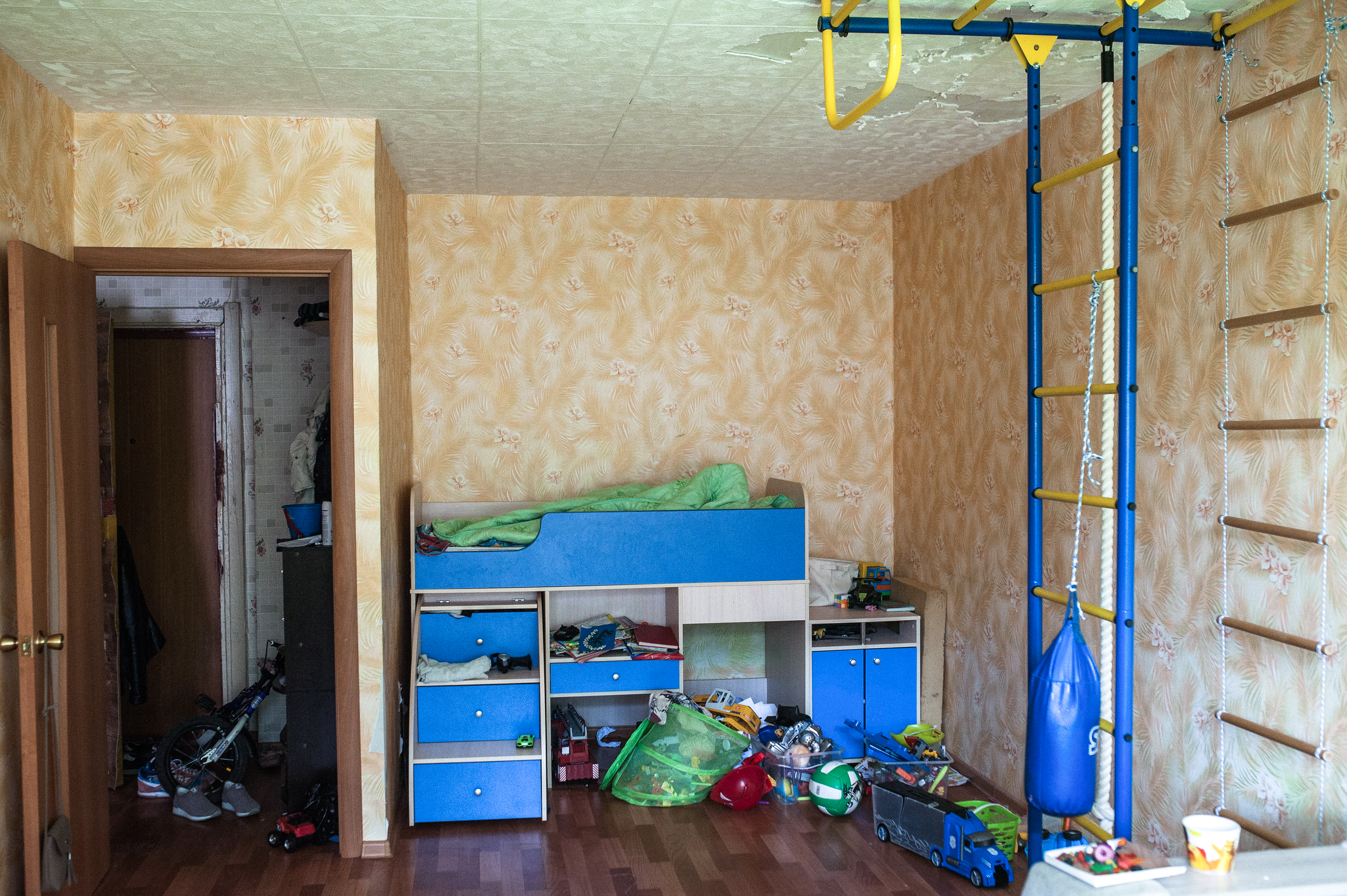Оксана работает воспитателем в детском саду, но пока находится в отпуске по уходу за вторым ребенком. Ее гражданский муж иногда «пропадает на полгода», но «всегда возвращается». В комнате стоит детская кровать, на полу и подоконниках – игрушки. На межкомнатной двери вмятина. По словам хозяйки, это она ее неосторожно толкнула. Входную дверь можно открыть без ключа – сломался замок, и женщина его не ремонтирует. «Еще неизвестно, будет ли квартира моей, – говорит Оксана, – и стоит ли в нее вкладываться».