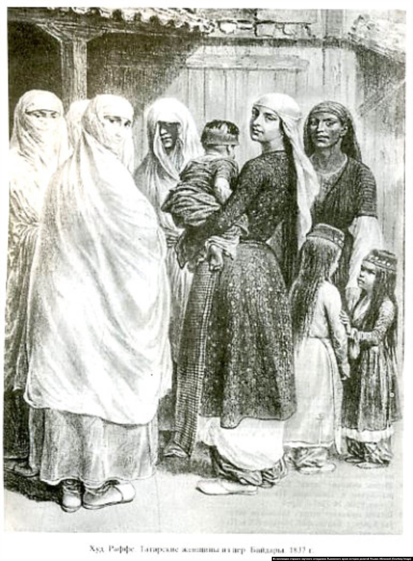 "Термин верхнего женского одеяния "чаршаф" является синонимом слова "простыня", так как имеет такие же размеры и цвет. То есть "чаршаф" – это такая накидка в виде белой простыни, которую женщина накидывала на голову и драпировала на своей фигуре. Руки у нее были спрятаны внутри, а краешком ткани, которая свисала с головы, при необходимости женщина прикрывала лицо", – рассказывает этнограф, кандидат исторических наук, старший научный сотрудник Львовского музея истории религий Ульвие Аблаева.