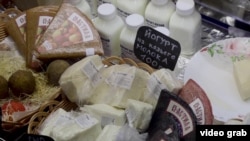 Анна Перова продает продукты из козьего молока. Ее утро сейчас начинается не с кофе, а со спирта: сантиметр за сантиметром она обрабатывает свой прилавок, потом среди дня еще много раз повторяет процедуру. Но к витрине все равно почти никто не подходит – карантин. Партнер Анны, фермер Анвар Зуфаров, раскладывает товары скорее по привычке.