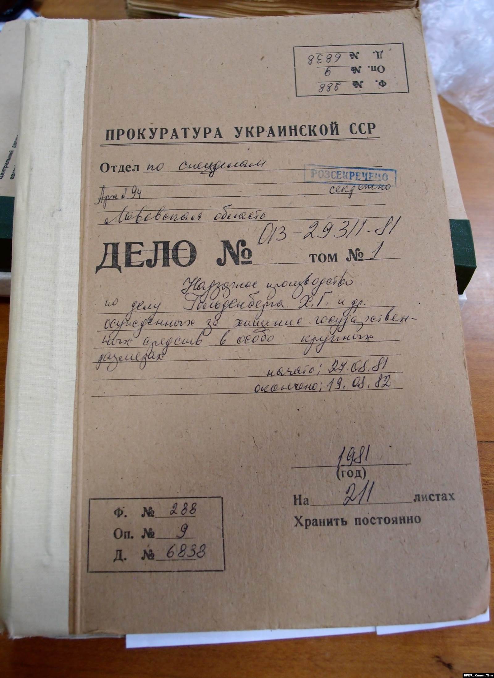Найти это дело в архиве не удалось. Та же ситуация со следственным делом Сони Гольденберг, а также оперативным делом, которое бы позволило с уверенностью сказать, что дало толчок разработке супругов. Основой для статьи послужили надзорные дела прокуратуры из Центрального государственного архива высших органов власти и управления Украины, а также короткие записки КГБ из архива Службы безопасности Украины. В них меньше подробностей, чем в следственных делах, поэтому в истории остаются белые пятна.