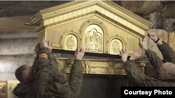 Сразу после строительства храма главная икона – 100-килограмовый "Спас Нерукотворный" начал путешествие по России. Изображение, созданное на деньги Владимира Путина, провезли по всем военным гарнизонам страны и православным храмам городов, где стоят военные части. Икона побывала в 120 городах, более чем в 150 храмах и преодолела 57 тысяч километров.